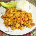 Add the shredded chicken, the fried sausages, the tomato and onion stew, and the tomato sauce to the chickpeas mixing them little by little, use the same pressure cooker or a large bowl where it is easy for you to stir all the ingredients.