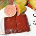 Meanwhile, wash and carefully peel the guavas, then cut them in half.
